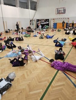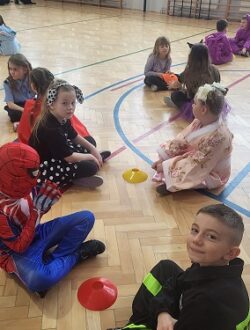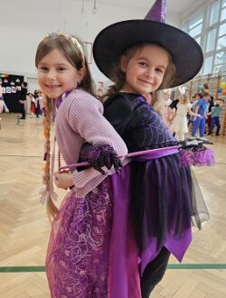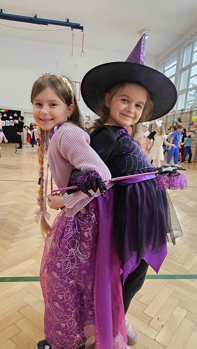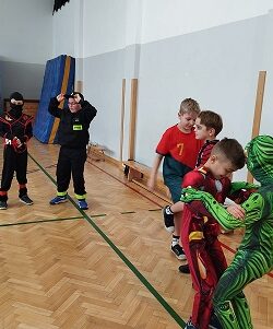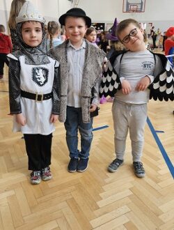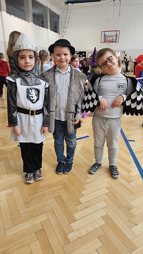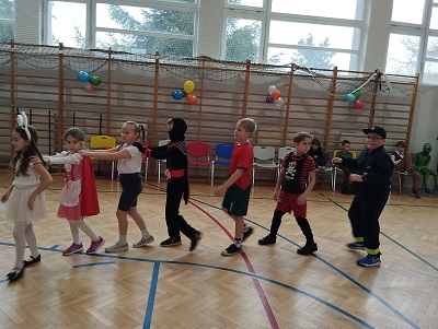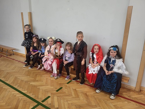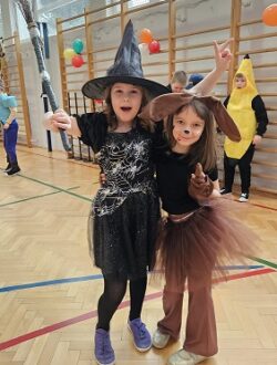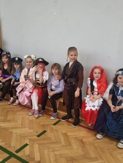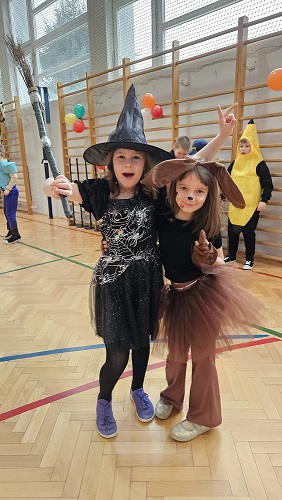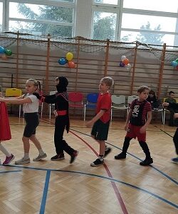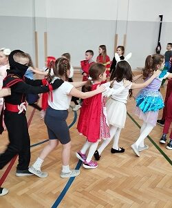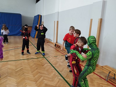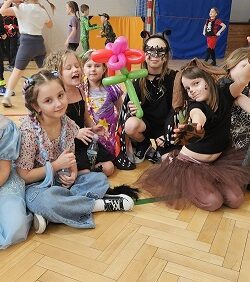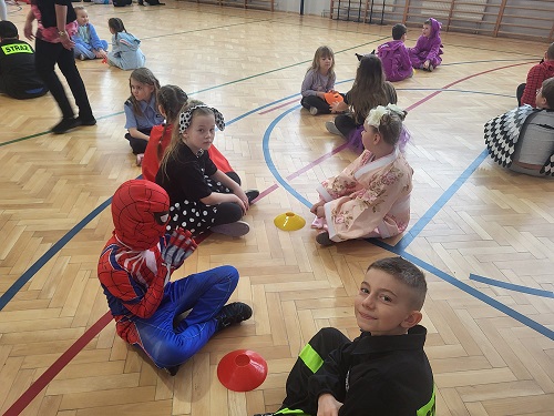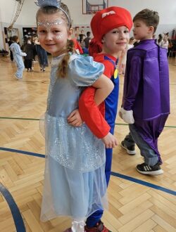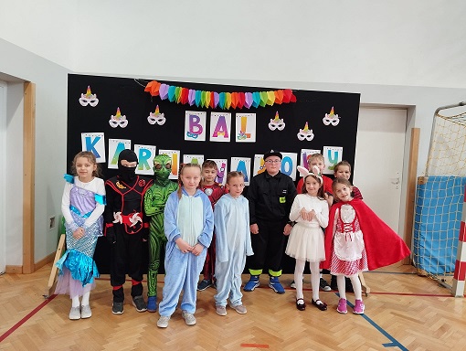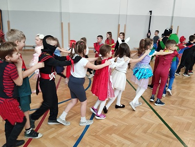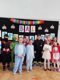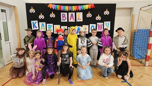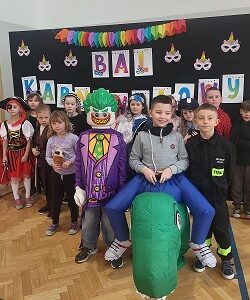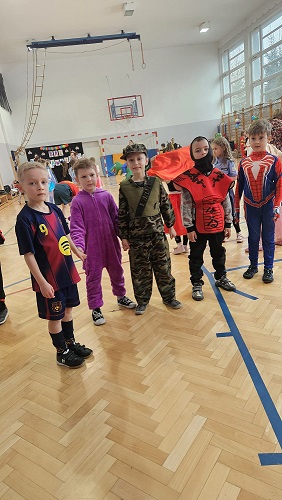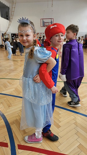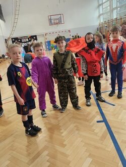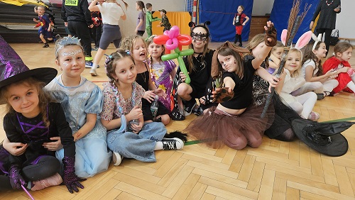 W piątkowe przedpołudnie – 23 stycznia 2026 r. w naszej szkole odbył się bal karnawałowy dla klas I – III. Tego dnia sala gimnastyczna zamieniła się w prawdziwą salę balową pełną wróżek, księżniczek, czarownic, superbohaterów, kowbojów, piratów, policjantów, piłkarzy i innych barwnych postaci z kreskówek i bajek. Rozpoznać dzieci było bardzo trudno. Na sali podczas pląsów było bardzo kolorowo, a uśmiech nie znikał dzieciom z twarzy. Wszyscy uczniowie bawili się znakomicie z profesjonalnymi animatorkami z grupy animacyjnej „Animacyjne Czarodziejstwo”. Były pociągi, korowody, kółeczka, tańce, zabawy z chustą, a nawet trochę magii i czarów. Uczniowie mogli uczestniczyć również w zabawach i konkursach. W przerwie, na uczestników zabawy, w każdej klasie czekał poczęstunek przygotowany przez rodziców. Bal umożliwił dzieciom i wychowawcom spędzenie czasu w miłej atmosferze, a także przyniósł wiele radości naszym uczniom, a to było głównym celem uroczystości. Dziękujemy wszystkim rodzicom za pyszny poczęstunek i za zaangażowanie w przygotowanie pięknych balowych strojów.