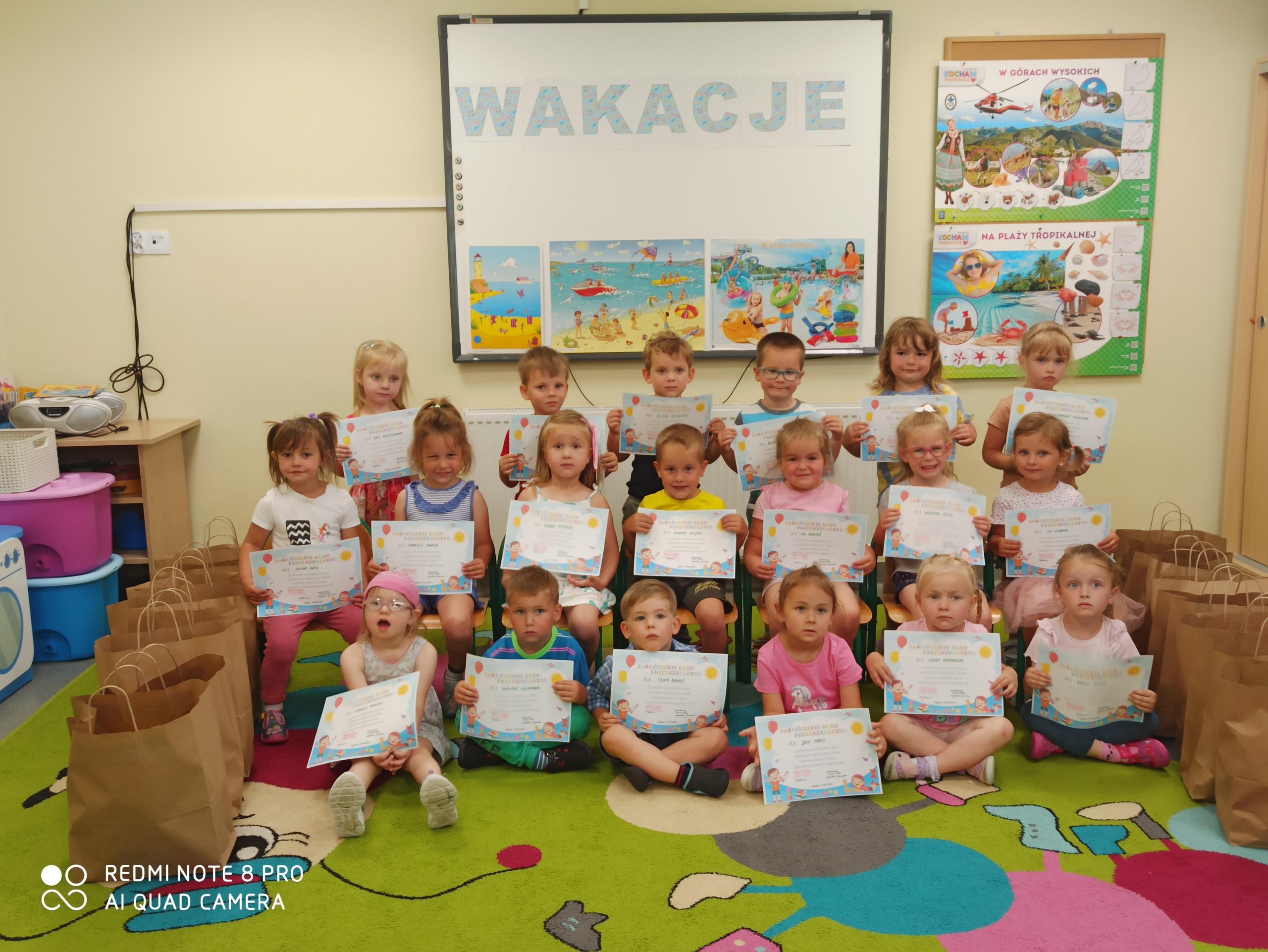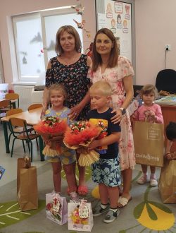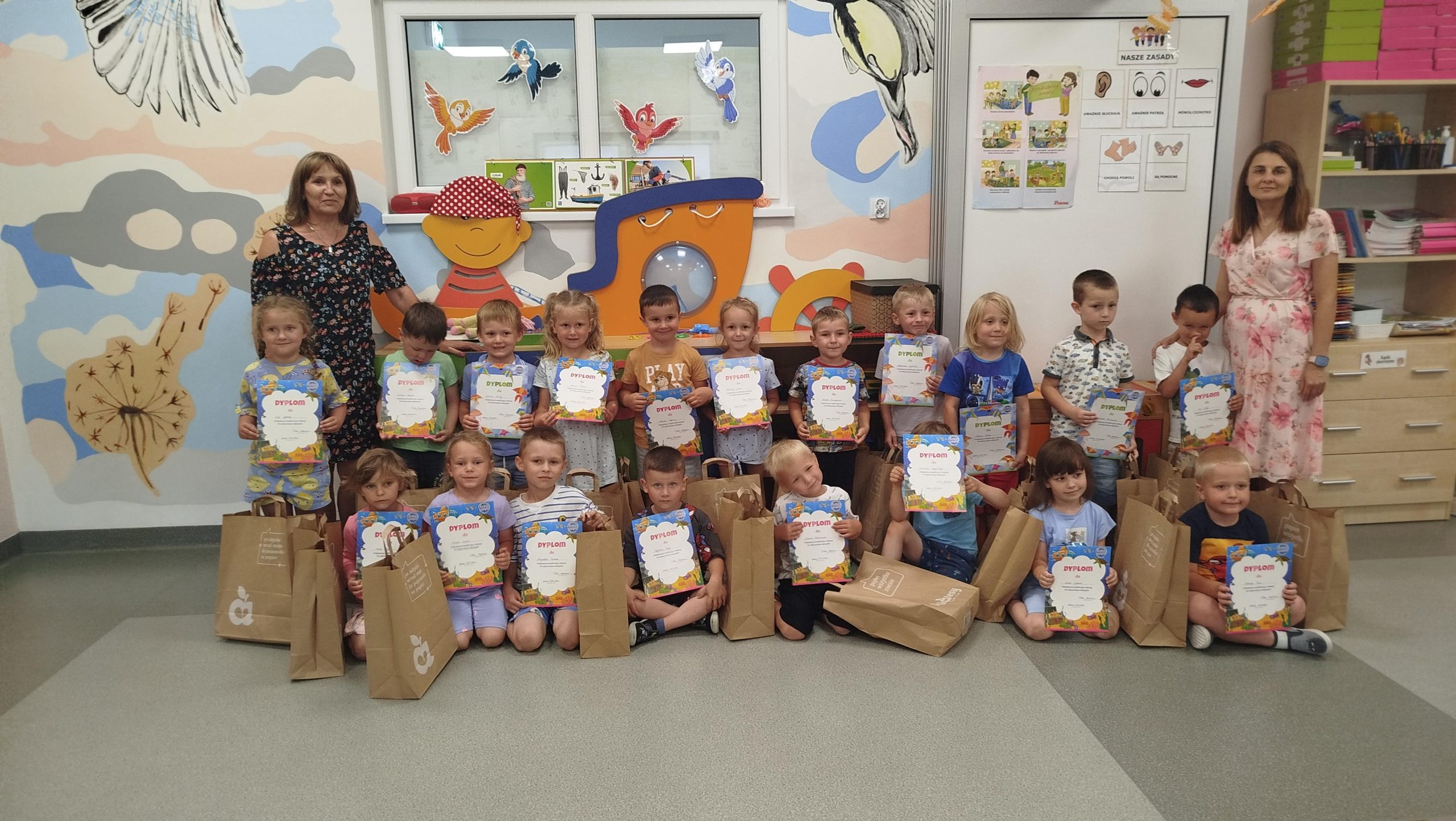 Dzieci z grup ,,Rybki” i ,,Skowronki” również uroczyście pożegnały mijający rok szkolny, otrzymały dyplomy i upominki przygotowane przez Radę Rodziców.