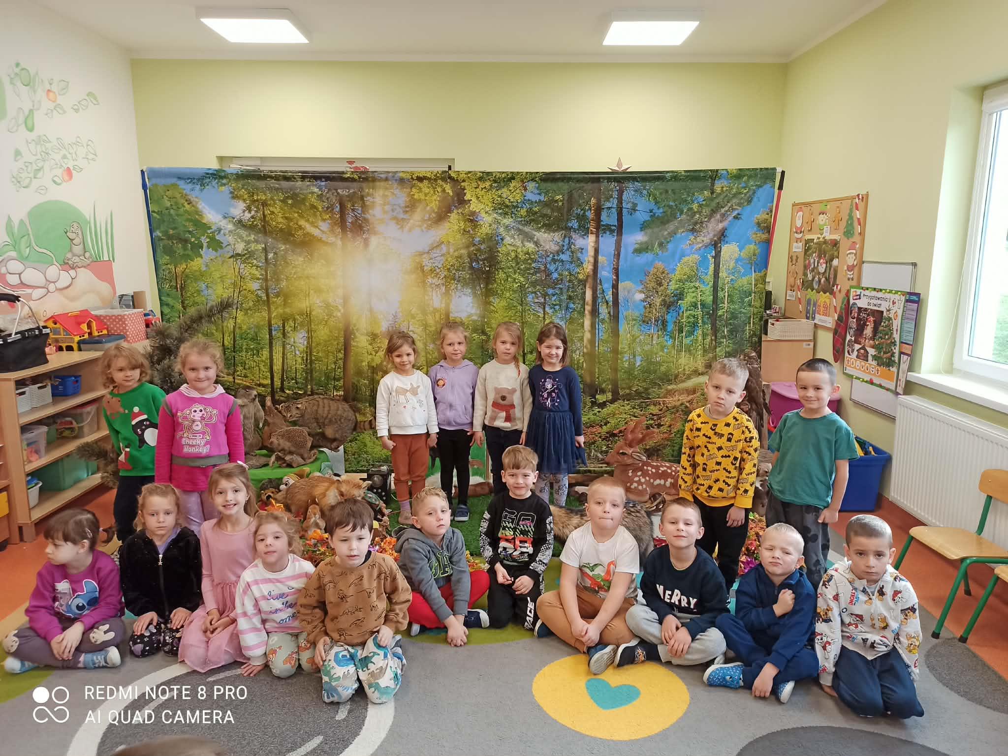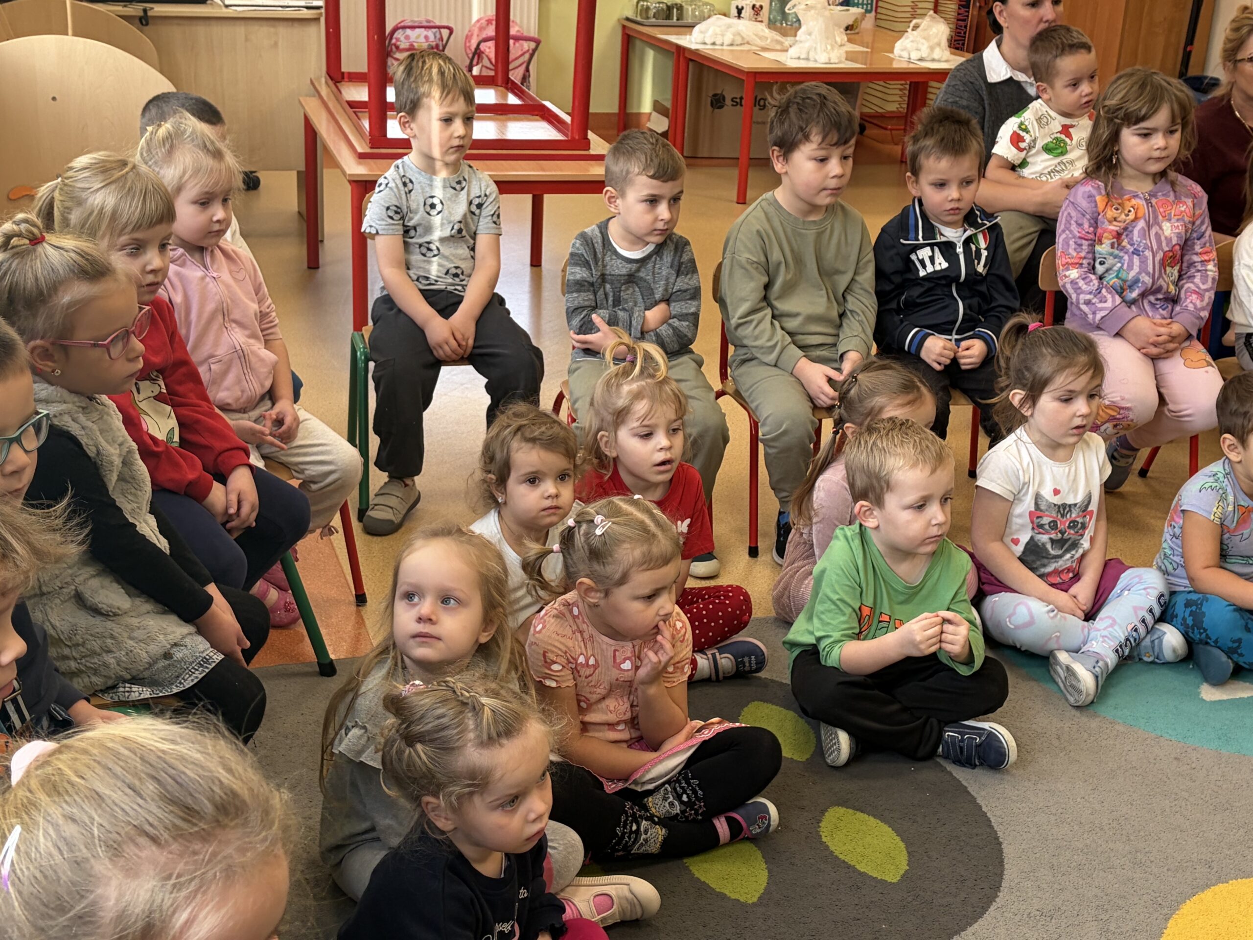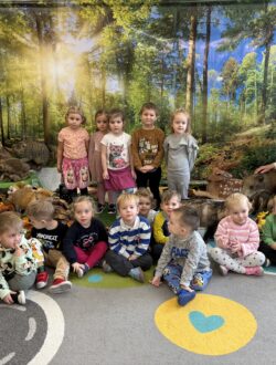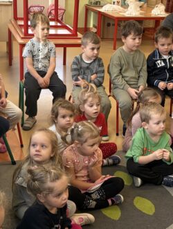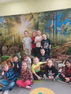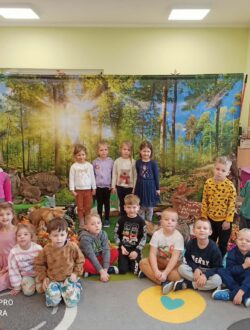 Podczas zajęć przybliżył przedszkolakom fascynujący świat leśnej przyrody. Dzieci miały okazję posłuchać oraz rozpoznawać śpiew wybranych gatunków ptaków, które od wczesnych godzin porannych budzą las swoim śpiewem. Poznały także zwyczaje niektórych zwierząt leśnych oraz mogły z bliska obejrzeć i dotknąć eksponaty przedstawiające m.in. lisa, dzika, łasicę oraz myszołowa.