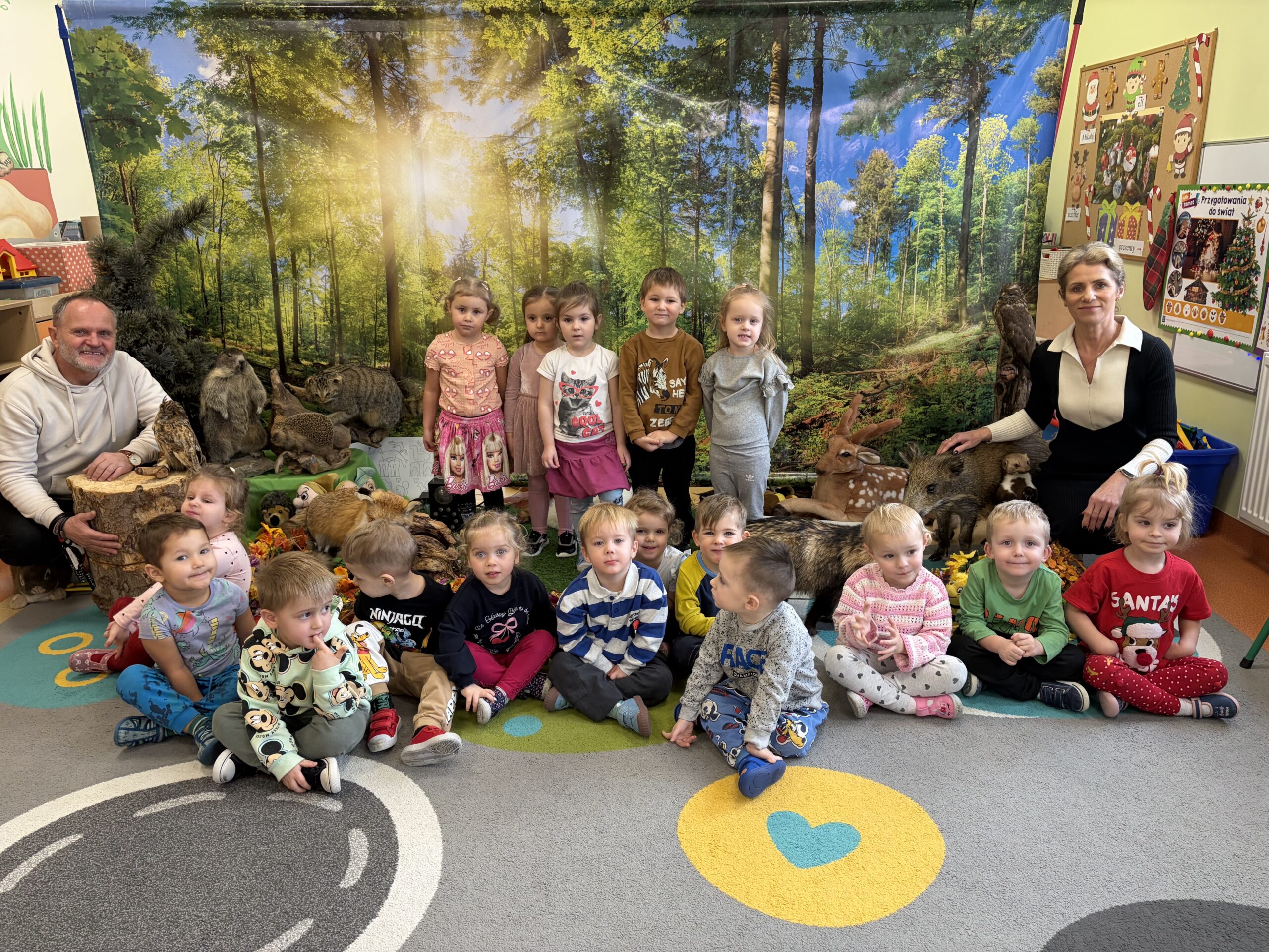 Dnia 16.12.2025 r. do naszego przedszkola przybył bardzo ciekawy gość – mistrz pszczelarstwa, pan Aleksander Rębacz, właściciel pasieki „Boża Iskierka” z Męciny Małej. Tym razem zaprosił dzieci na warsztaty edukacyjne pt. „Sekrety lasu i jego mieszkańców”.
